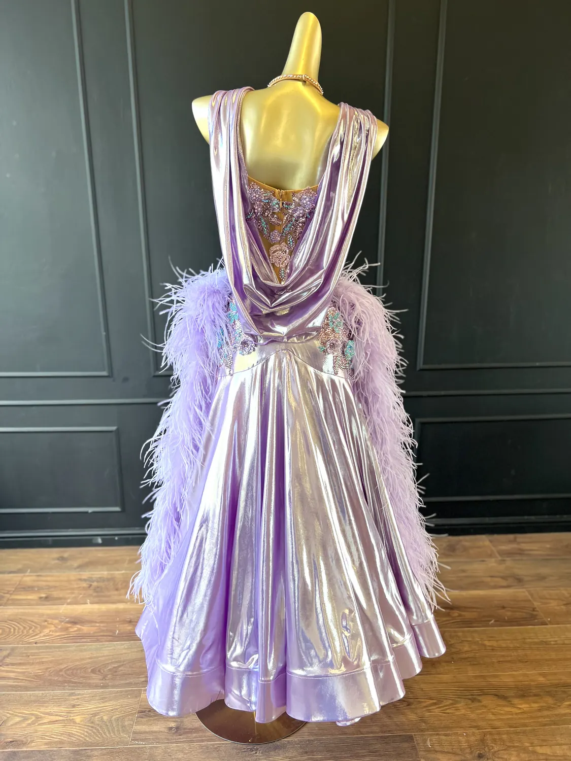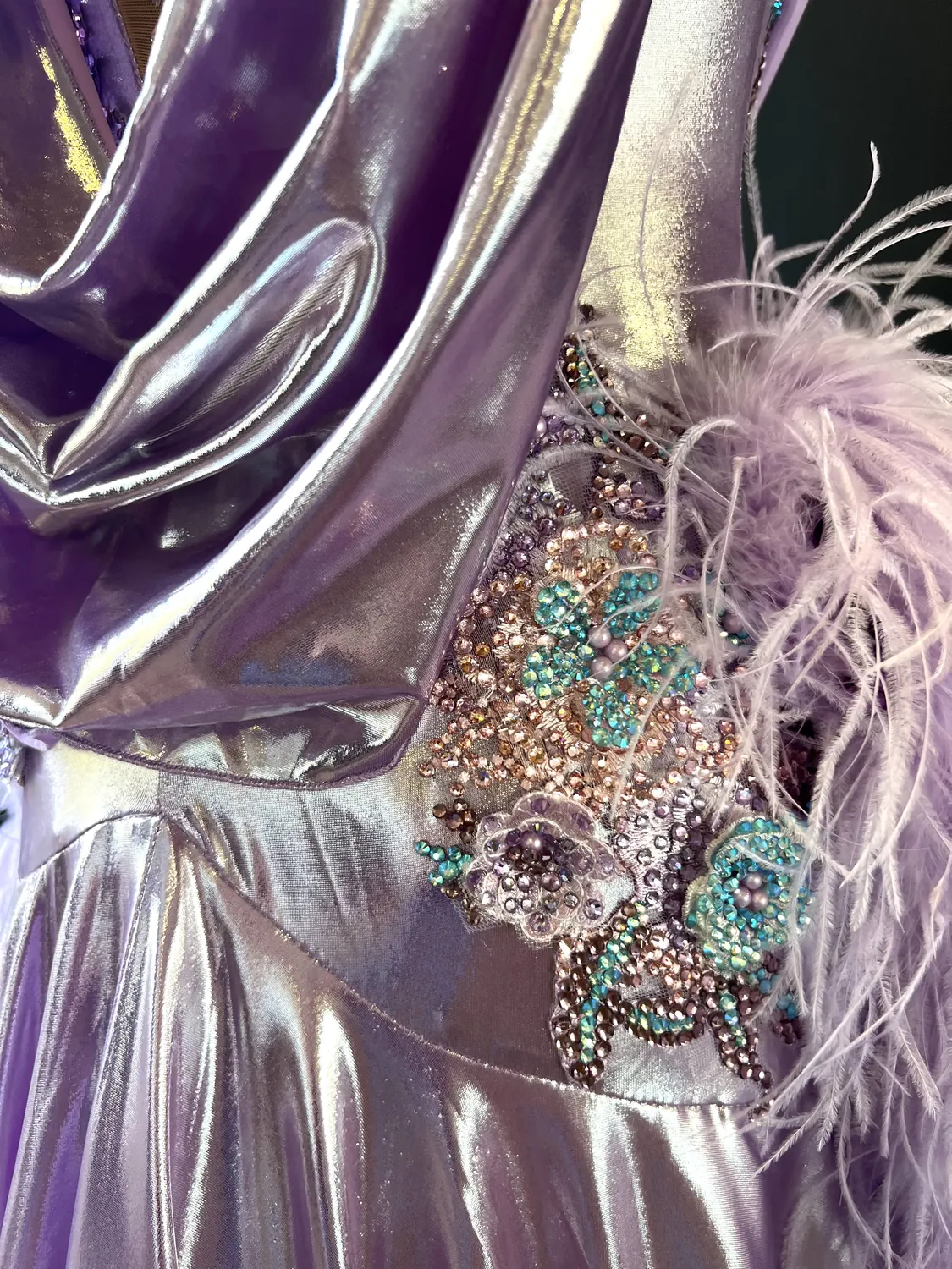 Ballroom competition dress in Lilac Shimmer metallic lycra and Lilac chiffon