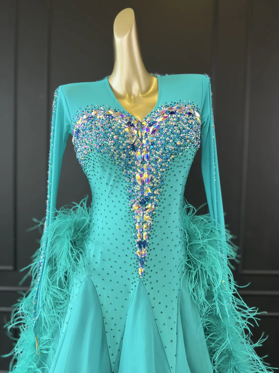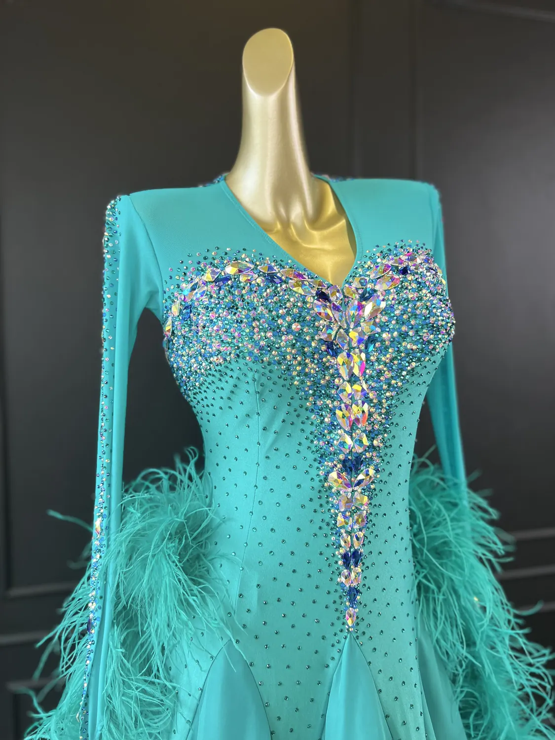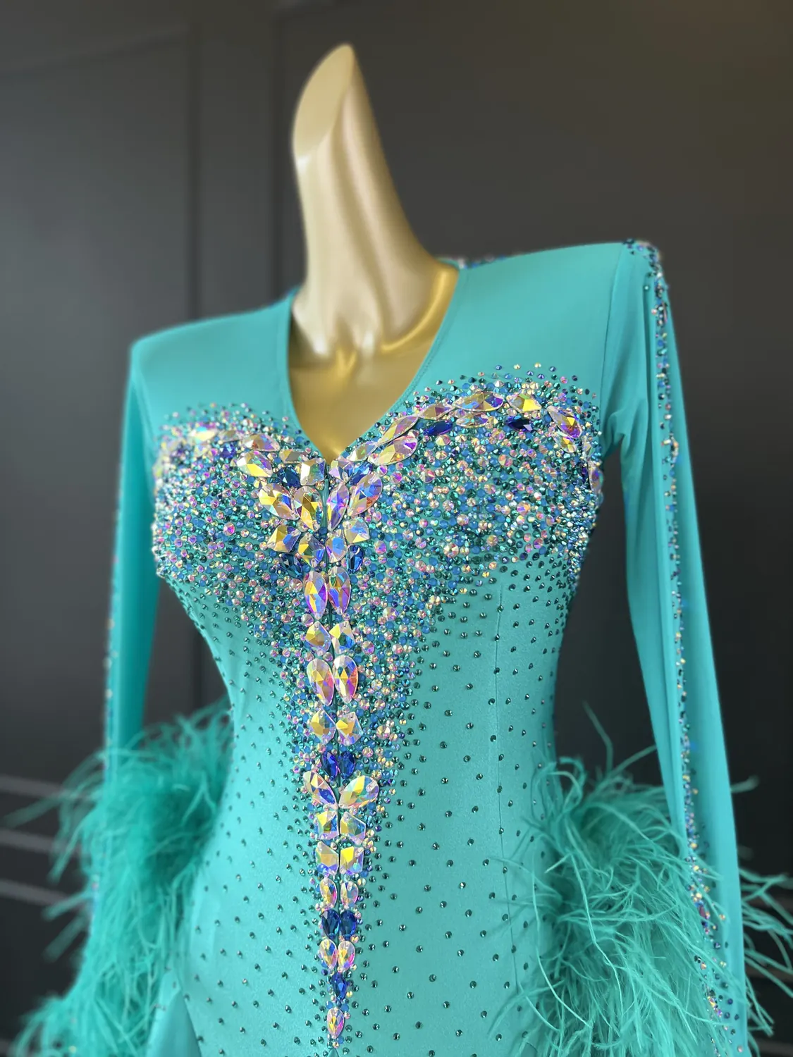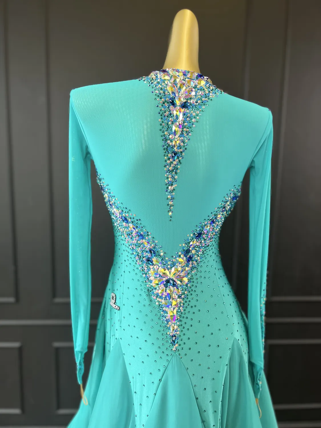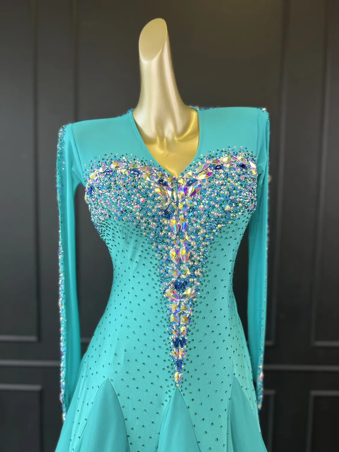 The feature stoning on this dress does not restrict the considerable stretch in the bodice, therefore it is suitable for UK size 14/16+ . This dress has secure poppers at the gusset.