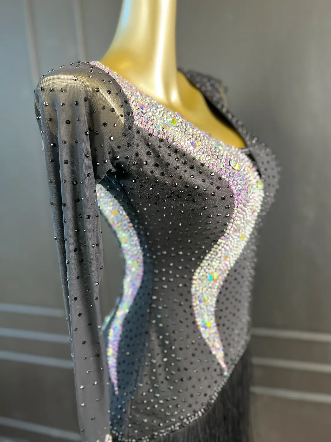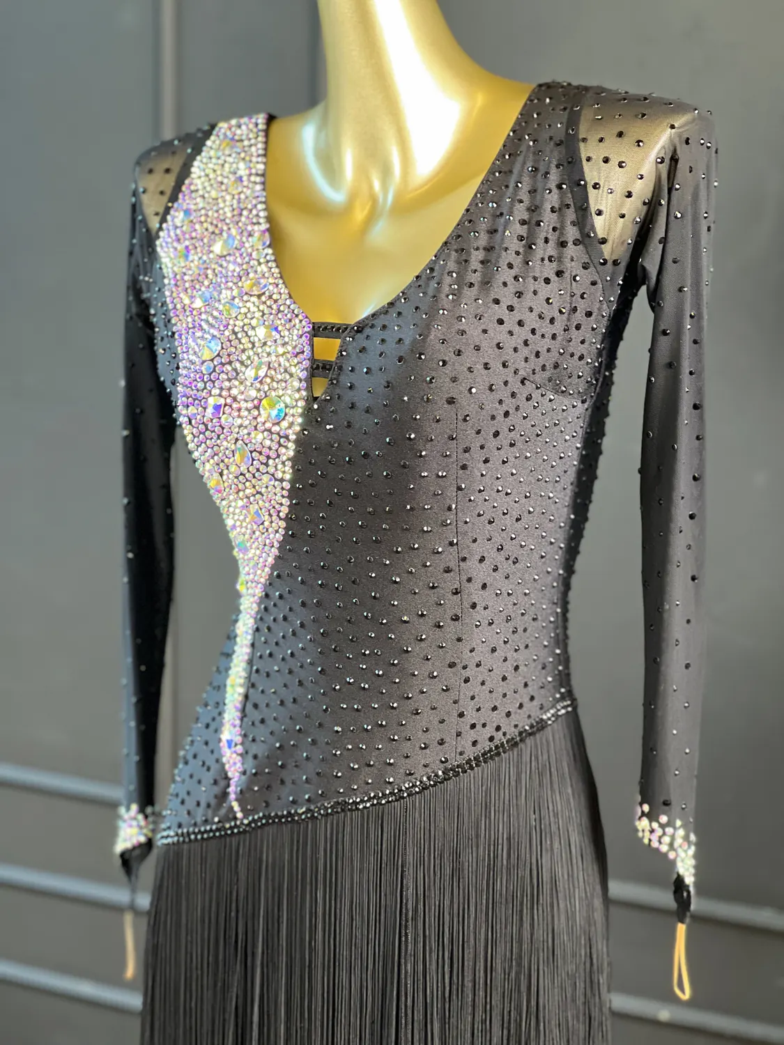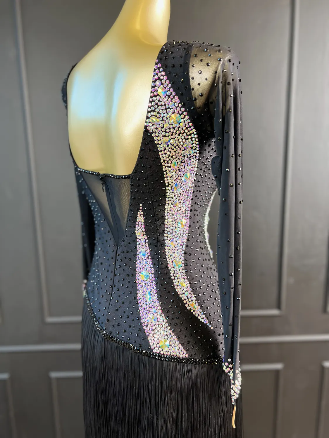 Though heavily stoned, there is some additional stretch in the lycra/mesh therefore this dress is size UK 12-14+.