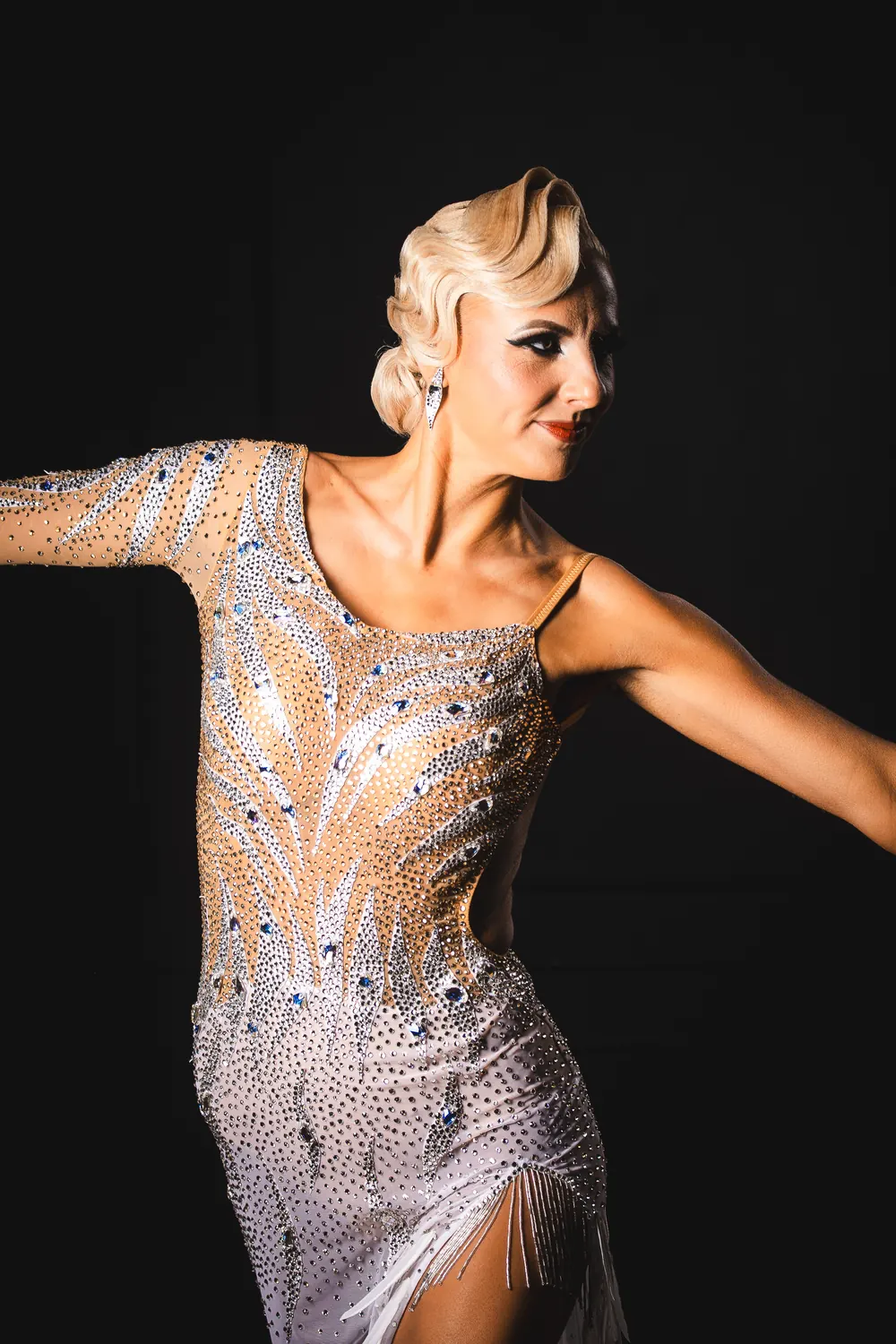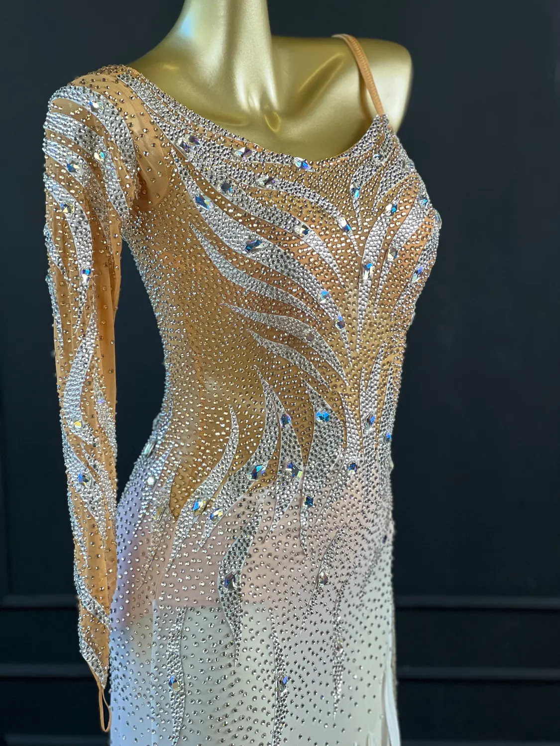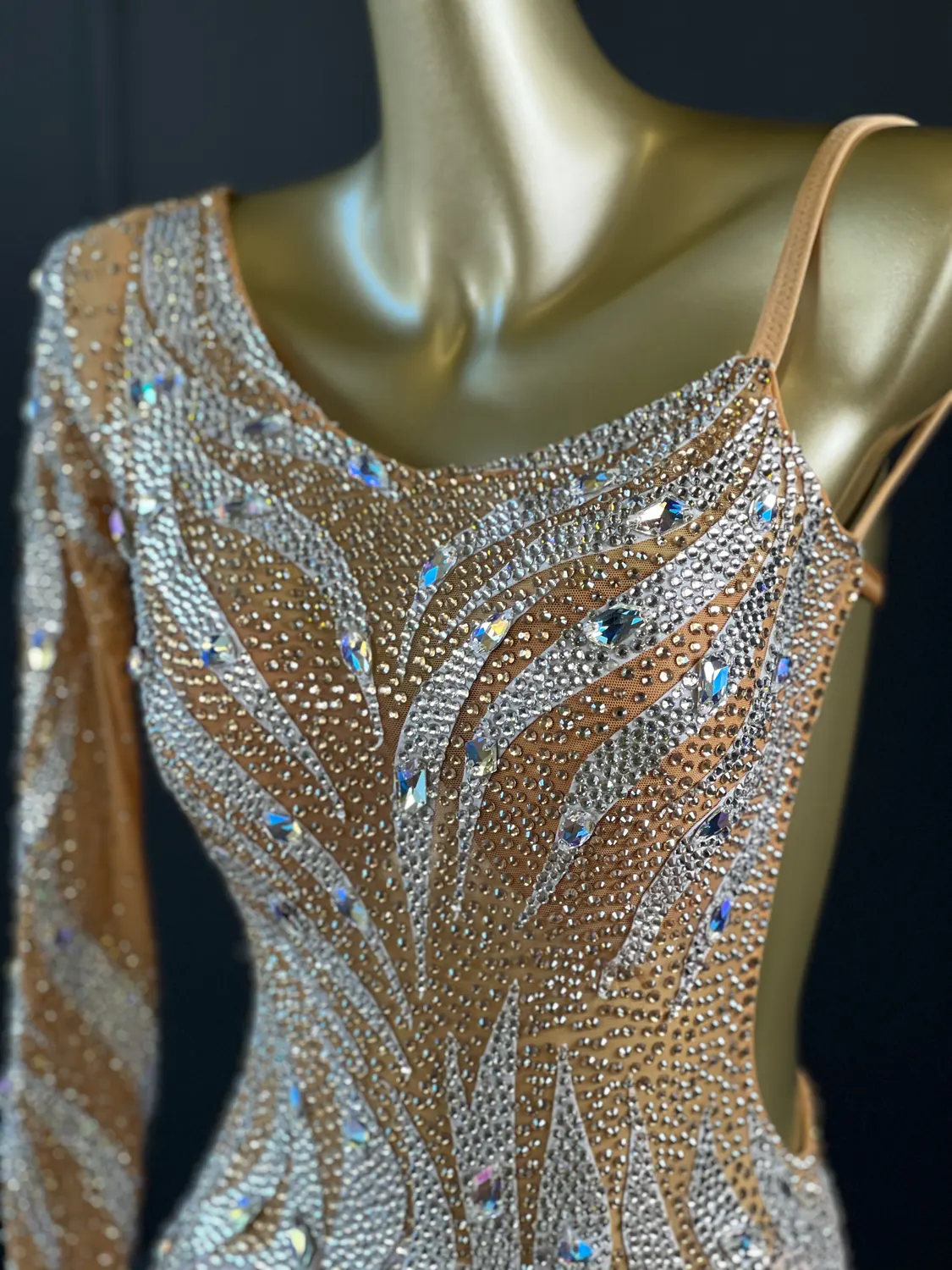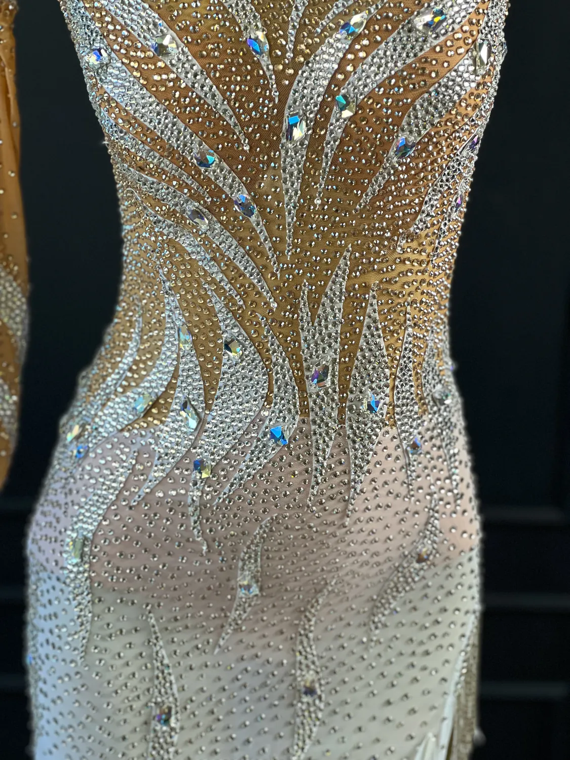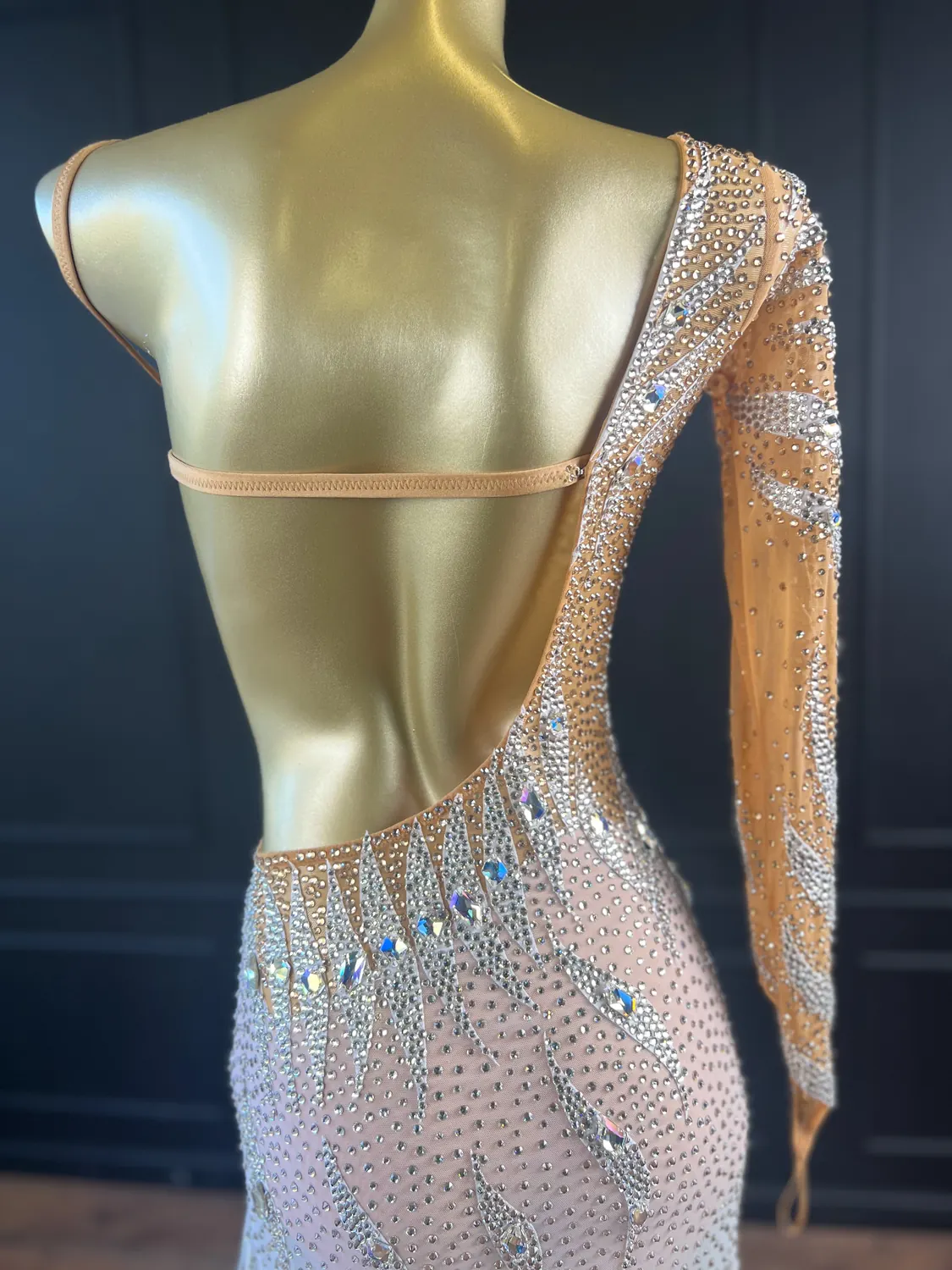 This dress is heavily stoned therefore there is limited additional stretch in the lycra/mesh. This dress is true to size UK 10-12.